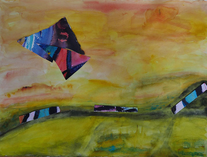 36 x 55 cm / Aquarelle, pastels & collage sur papier Saint-Armand